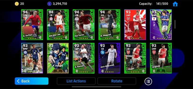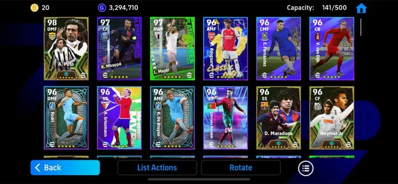 3104 Strength/High Rate Account/The Best Architect Andrea Pirlo-Epic(Andrea Pirlo,Neymar Jr,Costacurta,Maradonaa,Channathip,Arhan)-Special Card(Harry Kane,Inzaghi,KimmichTakefusa Kubo,Rashford,Hojlund,Bruno,Garnacho,Muller,Choupo-Mouting)-POTW(Mbappe 101,Messi 101,Theo,Luis Diaz,Pau Torres,Sorloth,Palmer,Rudiger,De Paul,Kim Min Jae,Jorginho,Brahim Diaz,Carvajal,Endo,Maigan,Areola,....)-Many Highlight(Cristiano Roanldo,Rodri,Bastoni,Van Dijk,Griezman,Odegaard,Enzo Fernandez,Nunez,Joelinton,Kalulu,Romeu,....)-EF52
