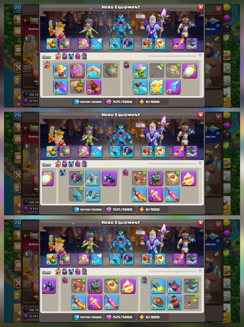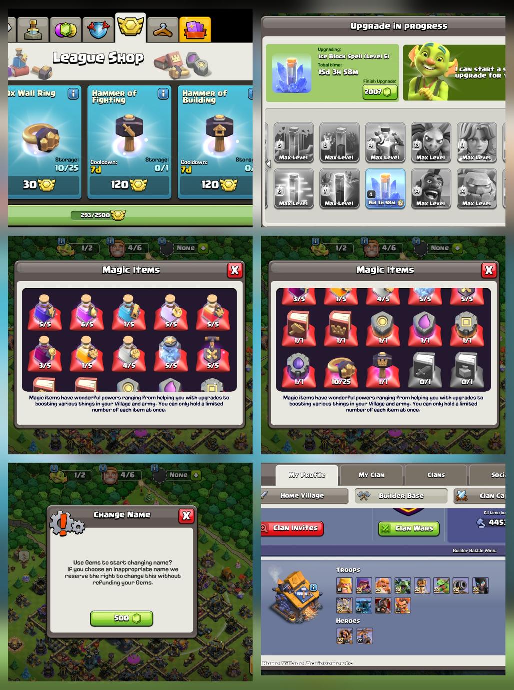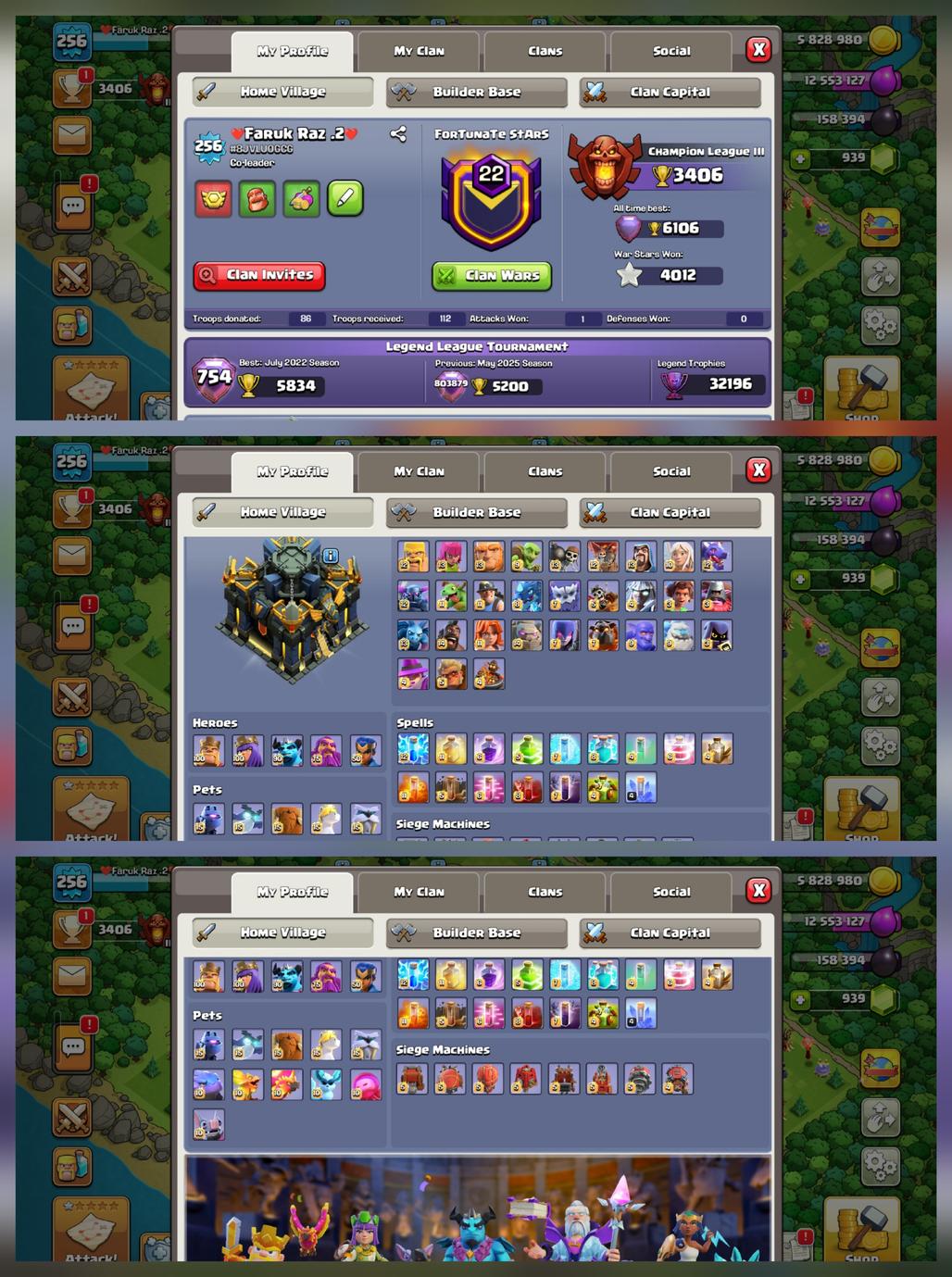 34/34 EQUIP MAX(9 EPIC MAX)754-GLOBAL RANK-FULLY MAX TH17-256XP!!LEAGUE WARDEN!LEGENDARY SKINS!!NC-500!!HERO[ALL MAX]