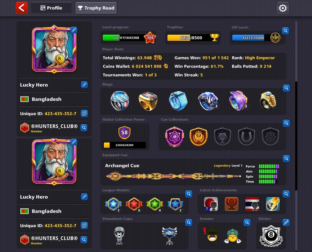 6B COINS ACCOUNT | Level 174 | 17 Legendary Cues | 2 Animated Cues MAX | 4 Animated Avatars | Fresh Account