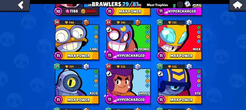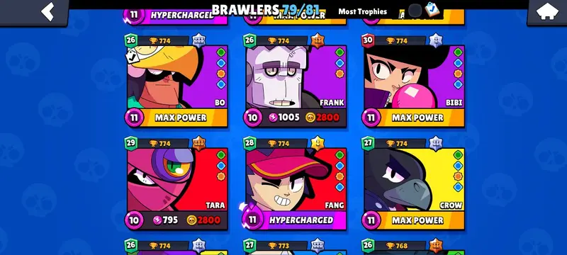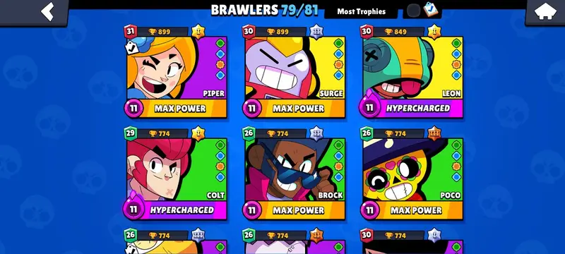 7 x RANK 30 BRAWLER| RARE SKINS 100 SKINS PREMIUM BS ACCOUNT 79 BRALWERS 49K TROPHIES 40 MAX 12 HYPER 295 EXP