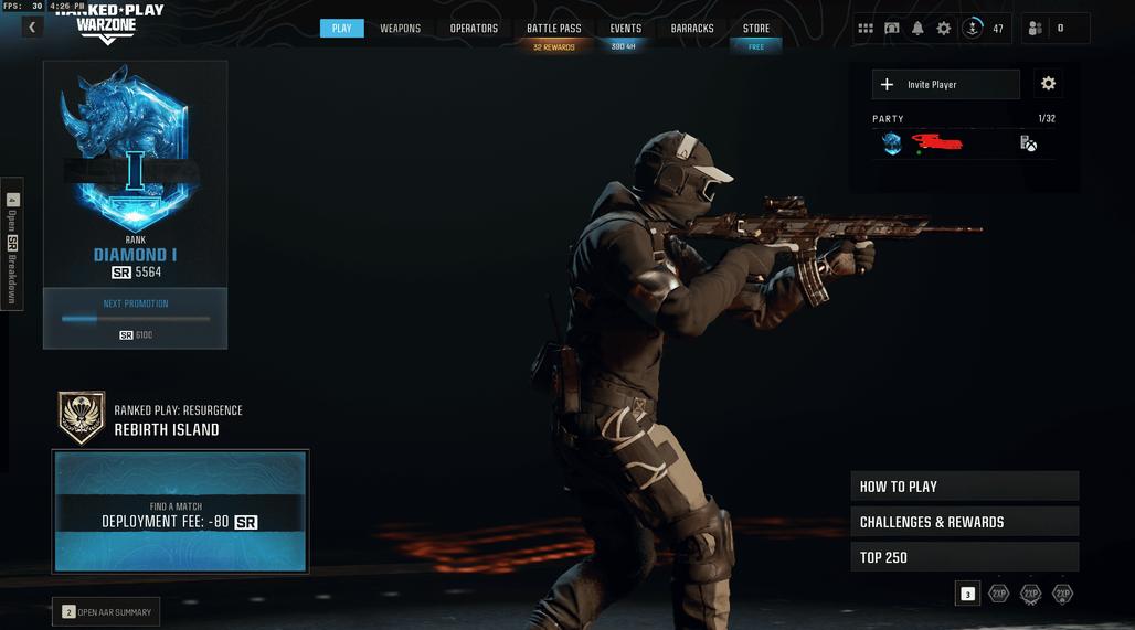 AUTOMATIC DELIVERY|DIAMOND RANK SEASON 5 REBIRTH ISLAND 5564 SR //BO6 NOT PURCHASED//FULL ACCESS /ALL PLATFORMS LINKABLE