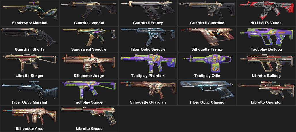 EU 22 SKINS 1K VP spent Guardrail Vandal NO LIMITS Vandal Sandswept Spectre Fiber Optic Spect... ! MKG03239