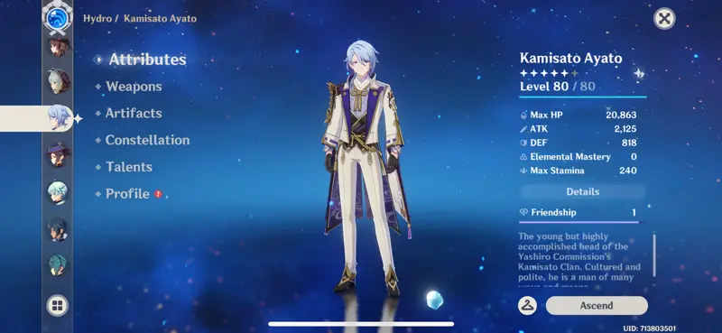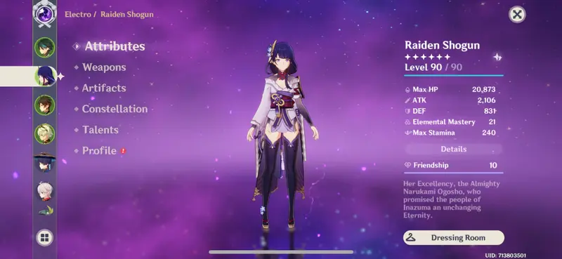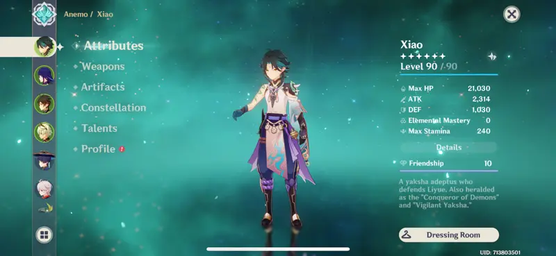 Xiao, Hu Tao, Nahida, Venti, Raiden, Zhongli, Scaramouche (Wanderer), Kazuha, Ayato, Keqing, Mona, Diluc, Qiqi, Jean