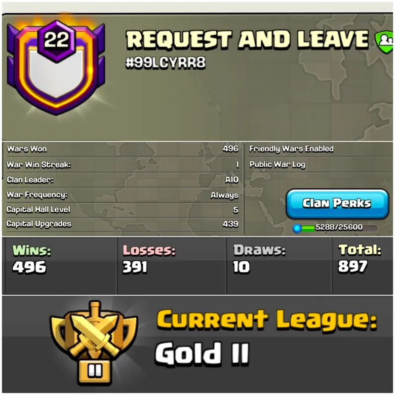 Level 22🔥REQUEST AND LEAVE💸CLAN CAPITAL 5 | GOLD LEAGUE | POSITIVE WARLOG | FAST DELIVERY!