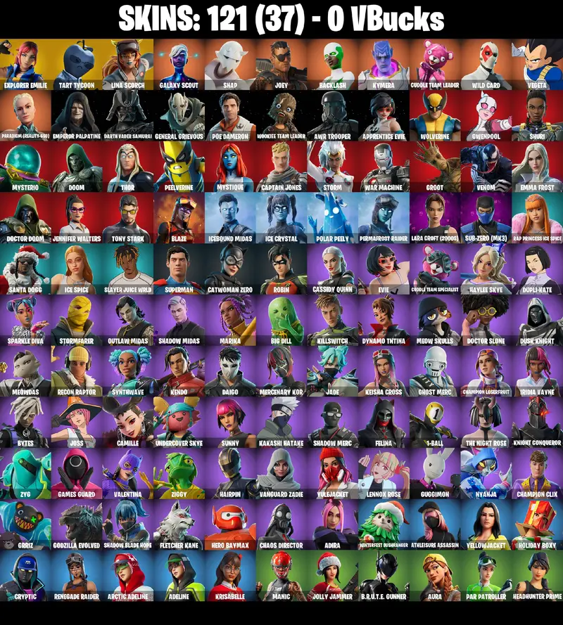 [PC-PSN-XBOX] 121 SKINS | RENEGADE RAIDER | EXPLORER EMILIE | TART TYCOON | LINA SCORCH | 0 VB