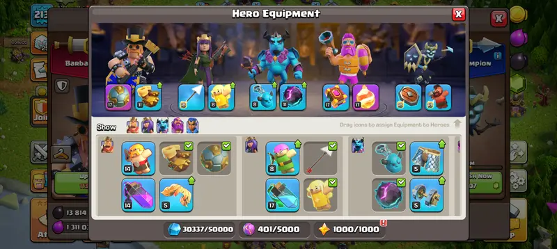 PREMIUM TH-17 | S.BALL-F.BALL-17 | HERO-63-69-40-48-20 | 9X HEROS SKIN! STRONG DEFENCES | GOLDEN-BLUE WALLS | BEST DEAL
