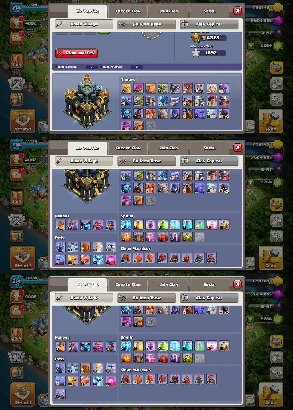 🔥PREMIUM TH-17🔥XP-214! VERY STRONG DEFENSE! M.MIRROR-26! E.BOOT-20! HEROES:-56-37-42-26-14! ALL 11X PETS! BEST DEAL