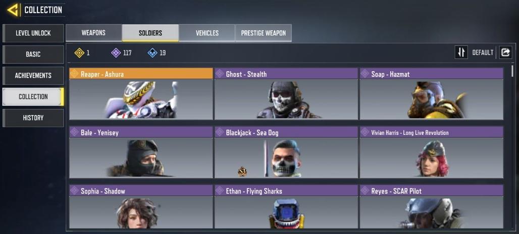 Save Activision - Gun Mythic: 1 - Gun Legend: 6 - Epic Gun: 247 - Legend character: 1 - Epic character: 117