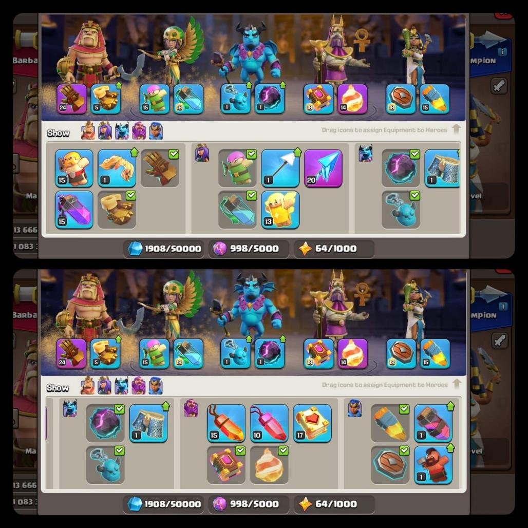 ⚡TH17 MAX XP 224 || EGYPT SET⚡4 MAX HEROES, PETS (-2)⚡ EGYPT SCENERY 18 SKINS⚡GAUNTLET 24, ARROW 20, FIREBALL 14⚡5573 LEGEND ATB⚡