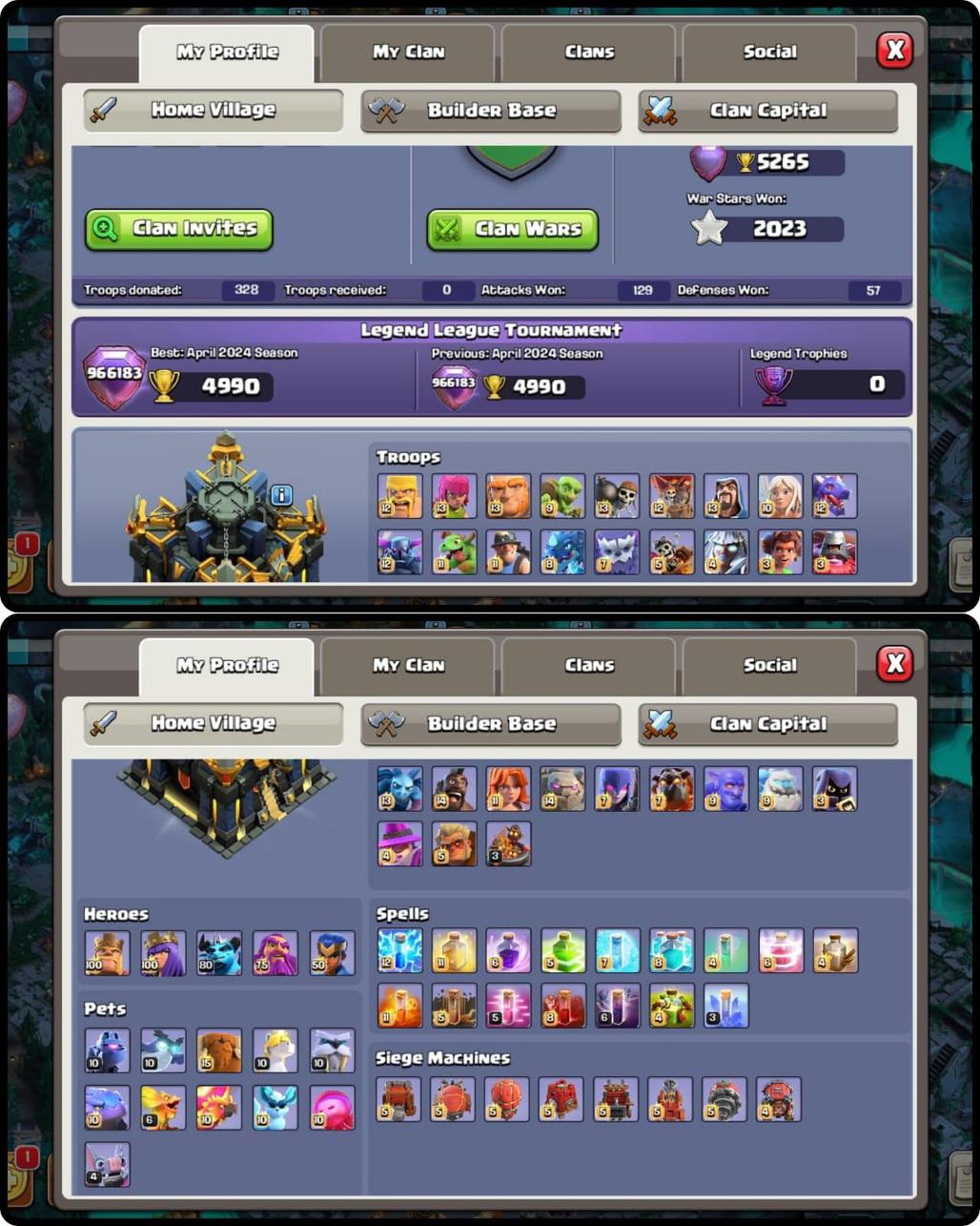 RANKED PvP 💥MAX TH 17 🌹 31 EQUIPMENTS [] 100-100-84-75-50 HERO [] LEVEL 278 [] 26980 TROPHY [] 1300 MEDAL | INSTANT