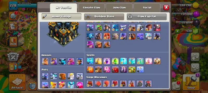 This account offers a comprehensive setup for serious players looking to dominate the battlefield. With top-level heroes and robust equipment, you'll have everything needed to excel in Clash of Clans.