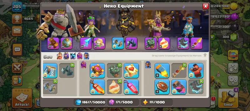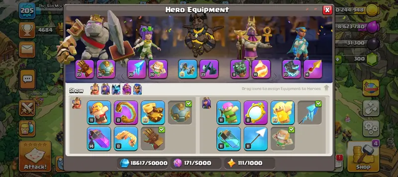 Th17 | Hero-89-96-75-46 | Wall Near Max | Defence Near Max | Equipment-GG-23-SB-26-FA-20-AF-20-EB-23 | XP-205 | [BH-9] |