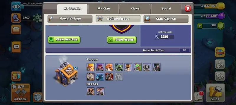 TH17 | Heroes: 89-96-75-46 | Walls: Near Max | Defense: Near Max | Equipment: GG-23, SB-26, FA-20, AF-20, EB-23 | XP: 205 | [BH-9] | Name Change: Yes | BEST DEAL