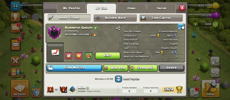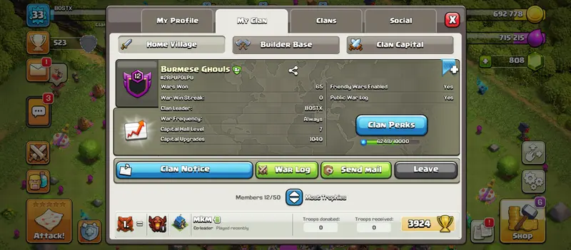 🔹Clan level : 12